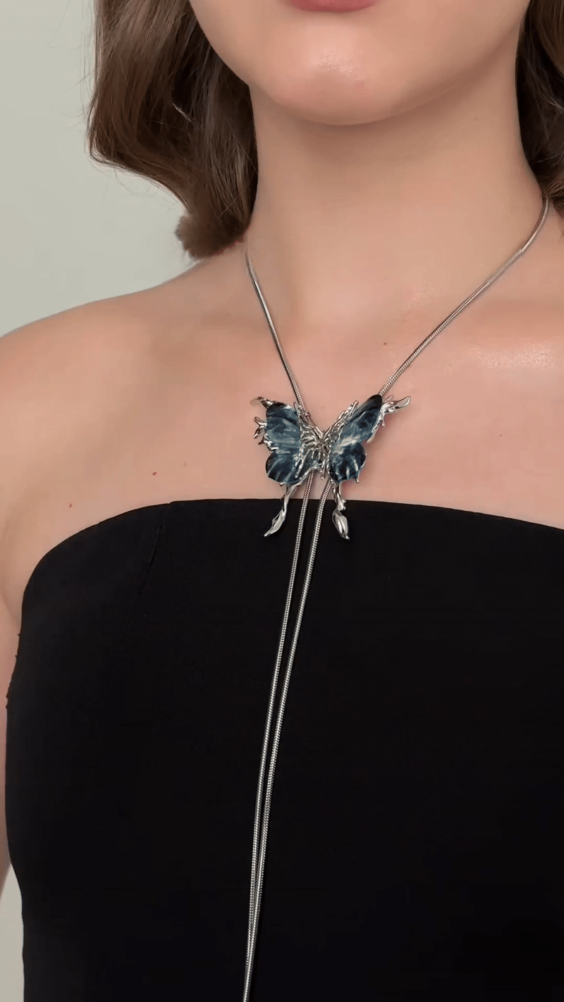 ✔ Push the butterfly upwards, while holding the bottom necklace